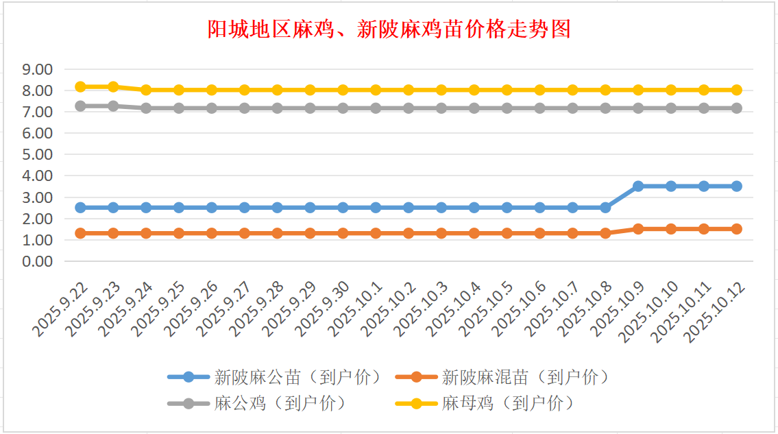 阳城地区麻鸡、新陂麻鸡苗价格走势图(来源:鸡病专业网)