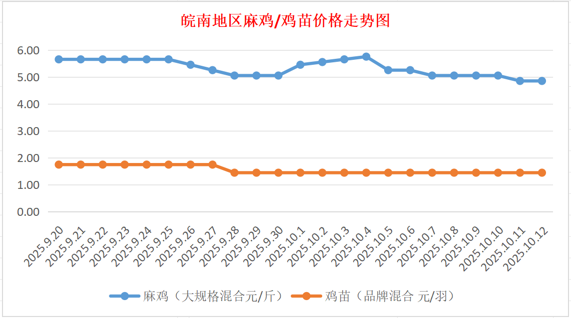 鸡病专业网独家信息:2025年10月12日皖南地区817-麻鸡行情最新走势
