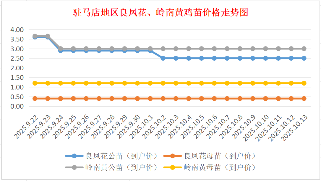 10月13日驻马店地区良凤花、岭南黄鸡苗价格行情