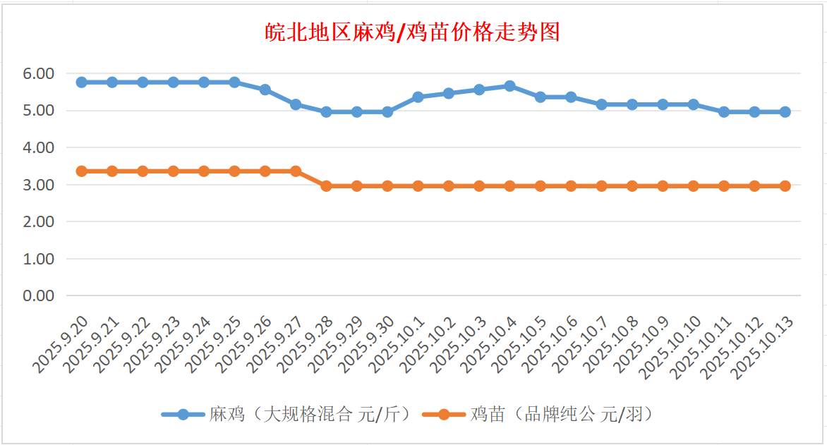 鸡病专业网独家信息:2025年10月13日皖北地区817-麻鸡行情最新走势