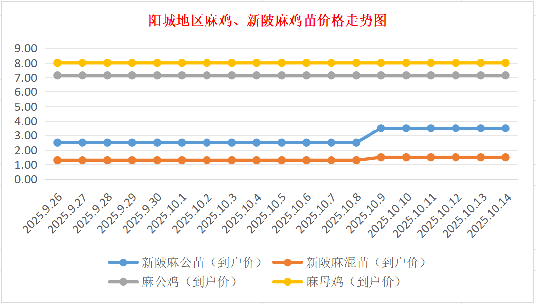 阳城地区麻鸡、新陂麻鸡苗价格走势图(来源:鸡病专业网)