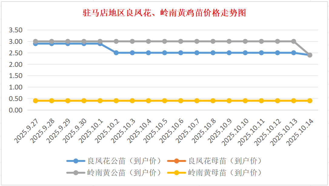 10月14日驻马店地区良凤花、岭南黄鸡苗价格行情