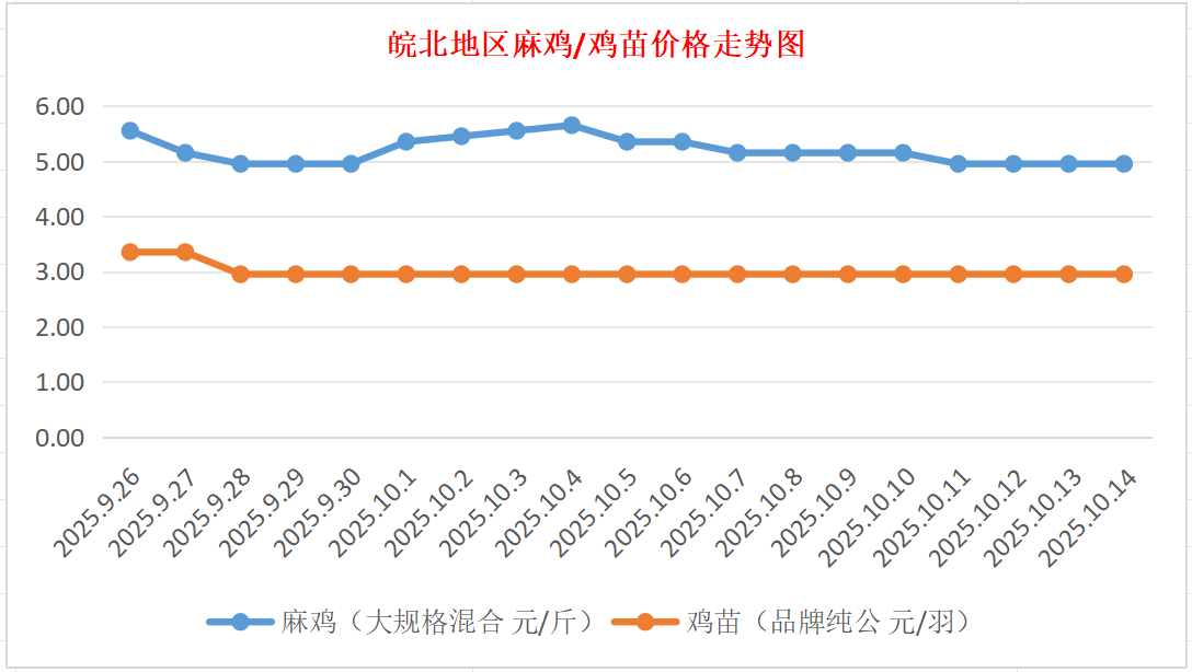鸡病专业网独家信息:2025年10月14日皖北地区817-麻鸡行情最新走势