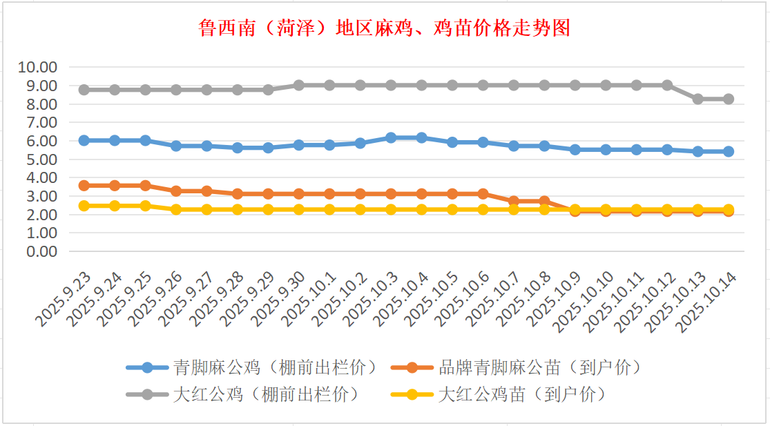 10月14日鲁西南(菏泽)地区麻鸡、鸡苗价格行情