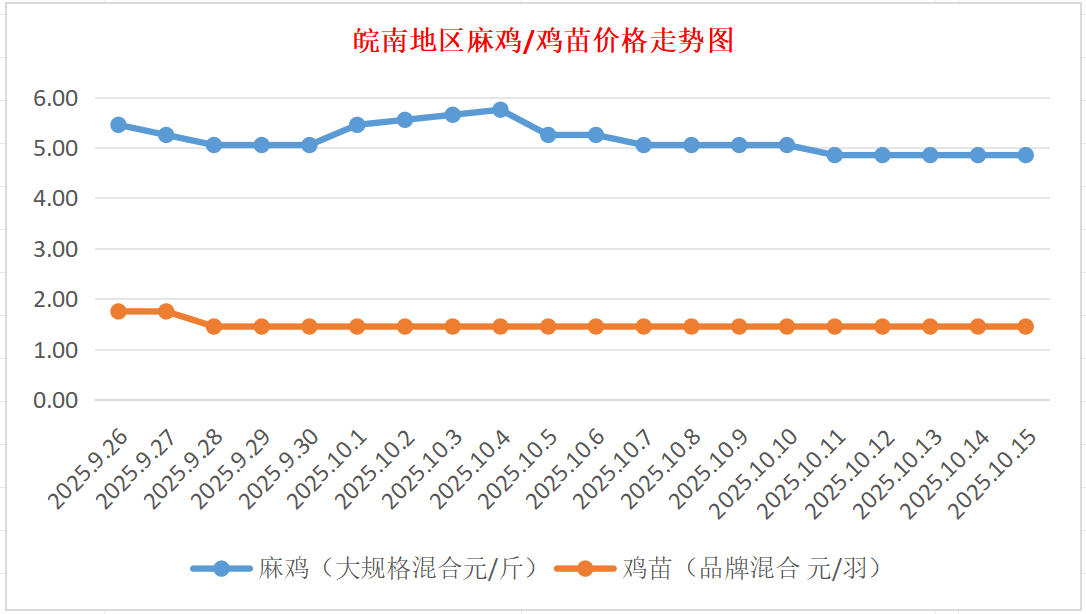 鸡病专业网独家信息:2025年10月15日皖南地区817-麻鸡行情最新走势