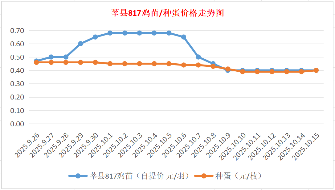 种蛋:昨日种蛋0.39-0.40元/枚。