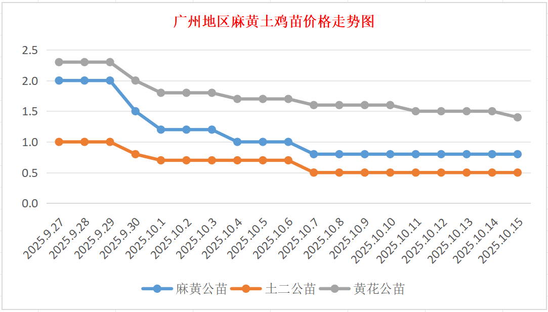 10月15日广州地区麻、黄、土鸡苗价格行情