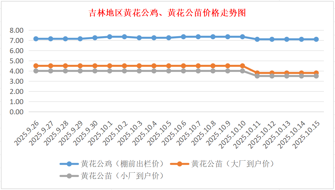 10月15日吉林黄花公鸡、鸡苗价格行情