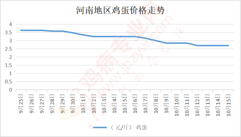 鸡病专业网消息:10月15日,河南郑州鸡蛋2.75元/斤,稳;新密鸡蛋2.75元/斤,稳;荥阳鸡蛋2.75元/斤,稳;中牟鸡蛋2.75元/斤,稳;周口鸡蛋2.65元/斤,稳;商丘鸡蛋80-81元/30斤,稳;鹤壁鸡蛋2.65元/斤,稳;汝州鸡蛋2.65元/斤,稳;开封鸡蛋80-81元/30斤,稳;漯河鸡蛋2.65元/斤,稳;漯河临颍鸡蛋2.65元/斤,稳;许昌鸡蛋2.65元/斤,稳;南阳鸡蛋2.65元/斤,稳;南阳邓州鸡蛋2.65元/斤,稳;新乡鸡蛋2.65元/斤,稳;安阳鸡蛋2.65元/斤,稳;新郑鸡蛋2.75元/斤,稳;登封鸡蛋2.75元/斤,稳;平顶山鸡蛋2.7元/斤,稳;驻马店鸡蛋2.7元/斤,稳;三门峡鸡蛋2.7元/斤,稳;焦作鸡蛋2.65元/斤,稳;信阳鸡蛋2.65元/斤,稳;濮阳鸡蛋2.65元/斤,稳。