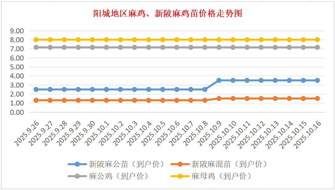 阳城地区麻鸡、新陂麻鸡苗价格走势图(来源:鸡病专业网)