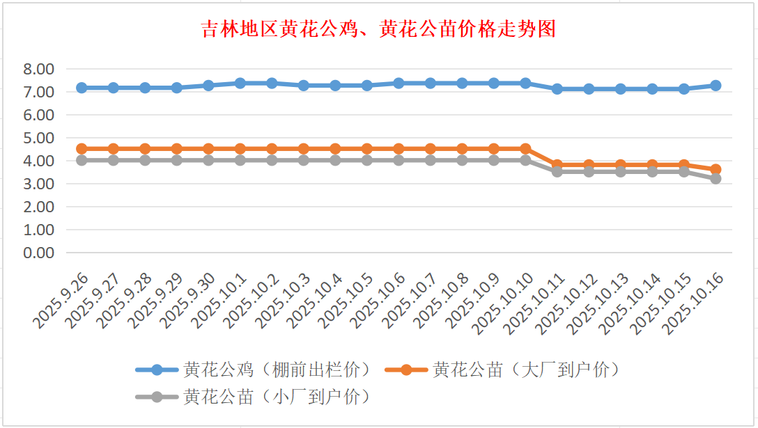 10月16日吉林黄花公鸡、鸡苗价格行情
