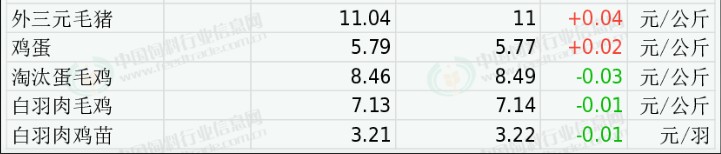 全国均价为11.04元/公斤,较昨日价格上涨0.10%。规模场为完成月度出栏计划而维持高位供应的背景下,市场整体供强需弱格局仍未改变,猪价上涨动力不足,短期或继续以低位震荡为主。