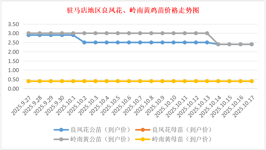 10月17日驻马店地区良凤花、岭南黄鸡苗价格行情