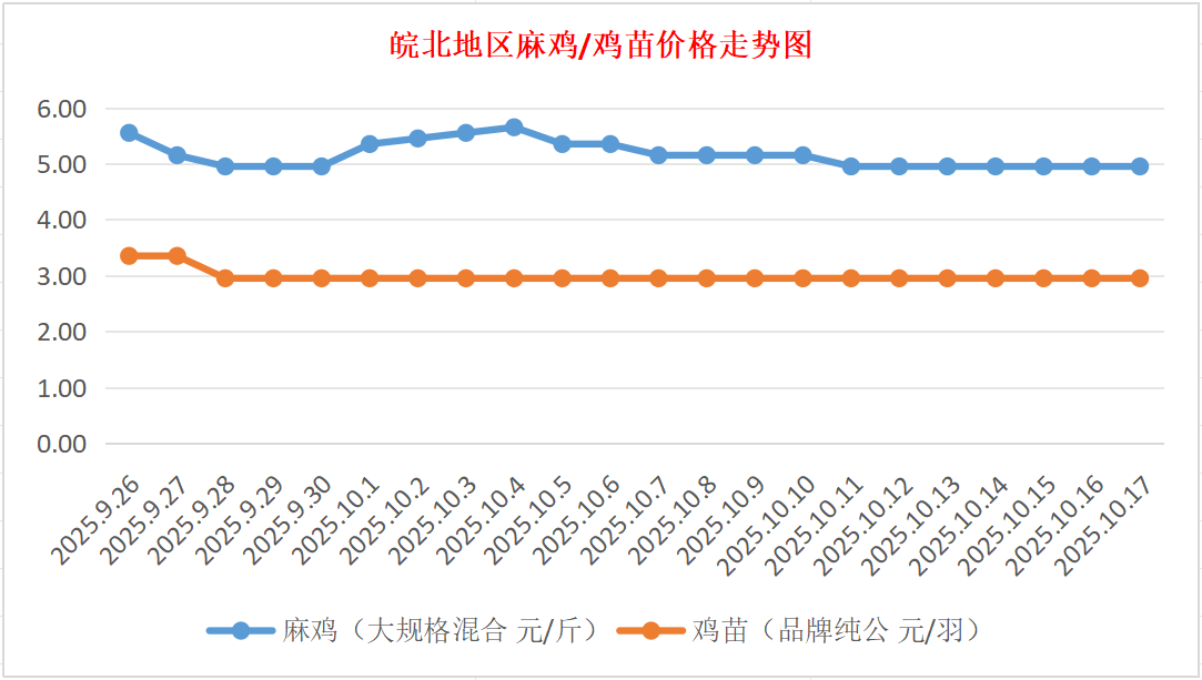 鸡病专业网独家信息:2025年10月17日皖北地区817-麻鸡行情最新走势