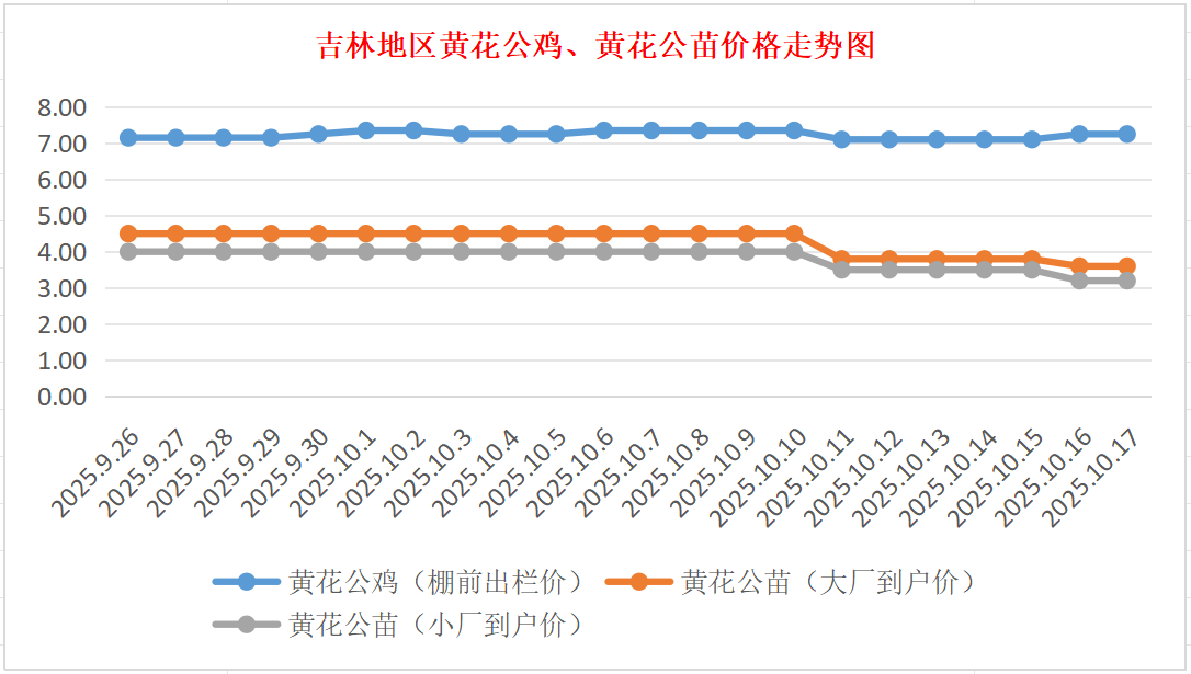 10月17日吉林黄花公鸡、鸡苗价格行情
