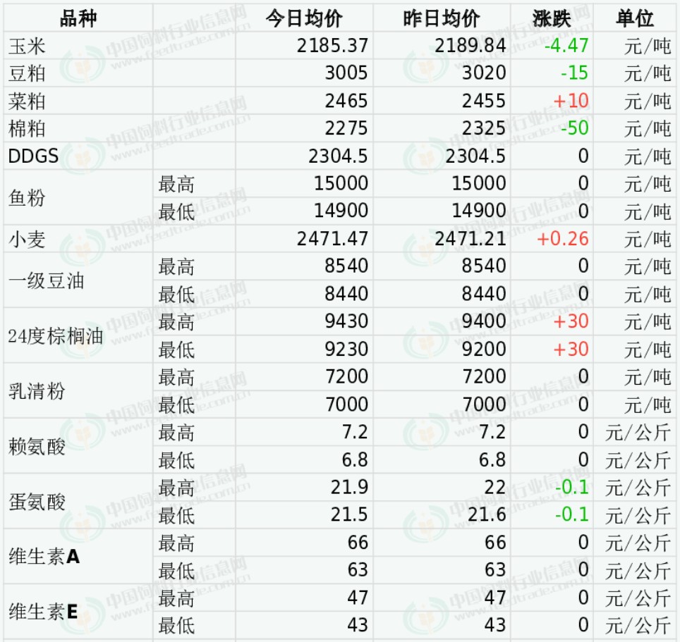 16日DDGS价格相对平稳。近期豆粕之间价差较小,性价比优势不明显,加之下游企业按需随用随采,采购积极性表现一般,市场走货速度偏缓,一定程度利空DDGS价格。10月份原料玉米价格总体继续偏弱震荡走势为主,叠加其他强关联植物蛋白粕价格总体偏弱走势的影响,多方因素纠缠博弈,我们预判10月份期间大多数时候DDGS交易价格总体呈稳中偏弱震荡走势为主的可能性更大,10月份月度均价环比止涨转下跌的可能性更大。