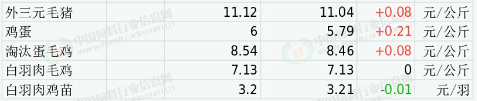 今日鸡蛋价格上涨。当前处于消费淡季,终端需求并未发生实质性好转,但市场普遍认为价格已触底,囤货需求因此增加,叠加今日市场盼涨情绪升温,共同推动蛋价上行。实际供需格局未发生根本转变,预计短期蛋价将继续在低位区间震荡调整,上行空间有限。今日主产区山东鸡蛋均价5.80元/公斤,较昨日价格上涨0.25;河北鸡蛋均价5.51元/公斤,较昨日价格上涨0.19;广东鸡蛋均价6.60元/公斤,较昨日价格上涨0.20;北京鸡蛋均价6.16元/公斤,较昨日价格上涨0.20。