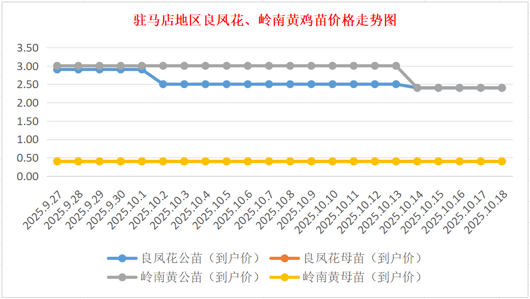 10月18日驻马店地区良凤花、岭南黄鸡苗价格行情