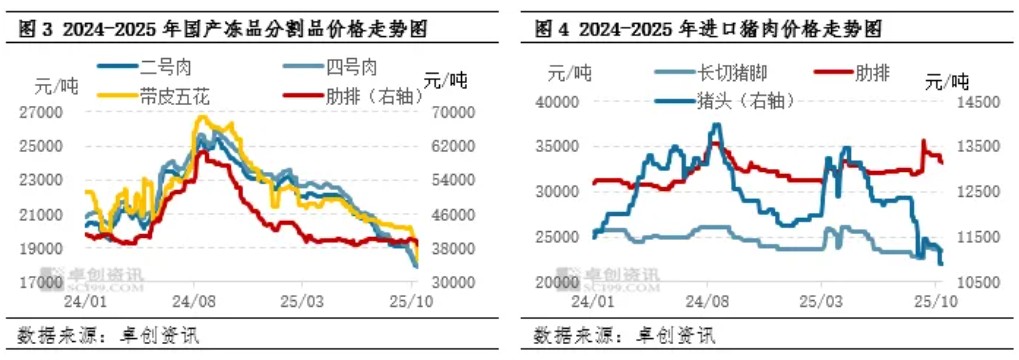 猪价下跌的逻辑,一方面,10月生猪供应进一步增加,其中,机构调研集团猪企出栏计划环比增加5.48%,上月头部猪企出栏计划完成95.33%,本月增量出栏,且,受节日利好有限,散户、二育以及放养公司出栏增量,供应显著提升,产销呈现错配的局面;另一方面,由于双节期间,受天气因素影响,南方市场高温抑制了居民肉类需求的积极性,而北方地区受持续秋雨,人员流动受到影响,节日利好兑现不佳,且,节后消费惯性回落,需求承接不足!