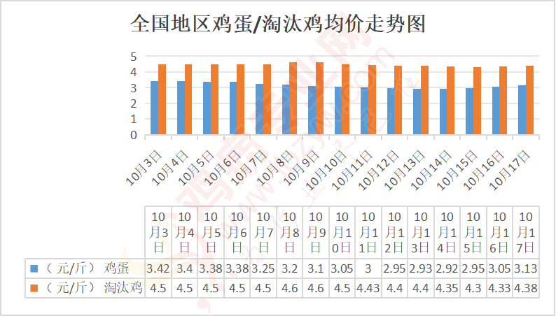 10月17日我国部分地区鸡蛋、淘汰鸡价格汇总