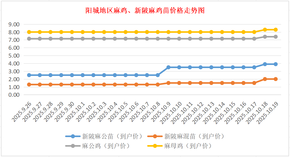 阳城地区麻鸡、新陂麻鸡苗价格走势图(来源:鸡病专业网)