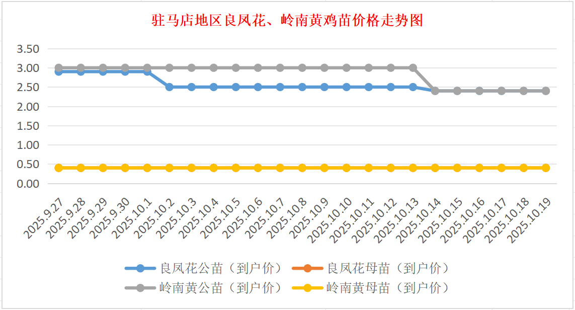 10月19日驻马店地区良凤花、岭南黄鸡苗价格行情