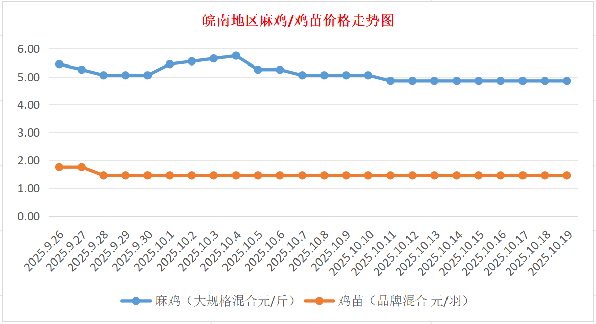 鸡病专业网独家信息:2025年10月19日皖南地区817-麻鸡行情最新走势