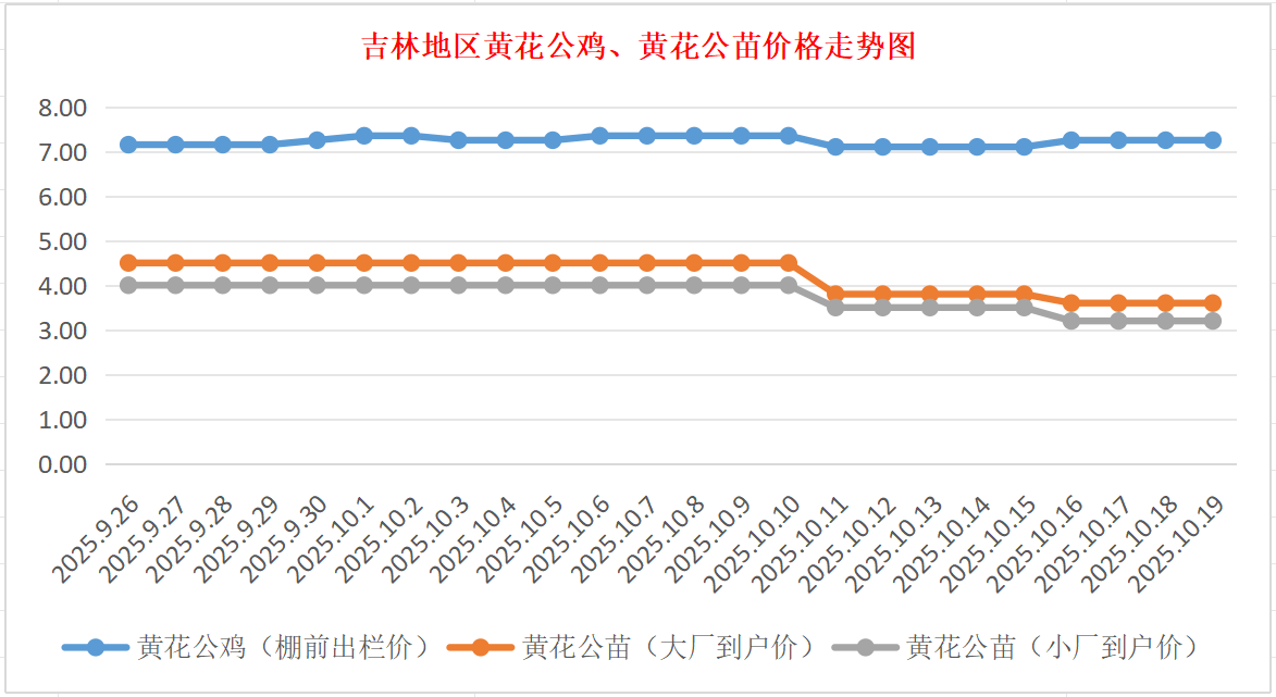 10月19日吉林黄花公鸡、鸡苗价格行情