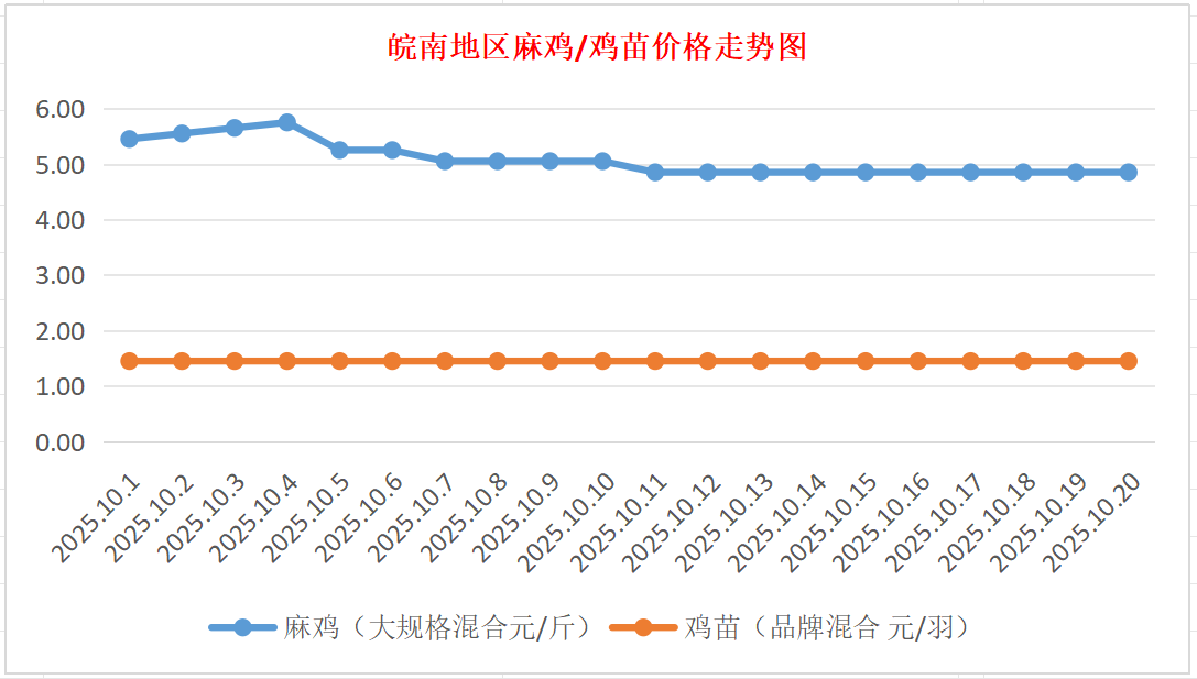 鸡病专业网独家信息:2025年10月20日皖南地区817-麻鸡行情最新走势