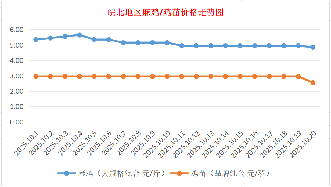 鸡病专业网独家信息:2025年10月20日皖北地区817-麻鸡行情最新走势