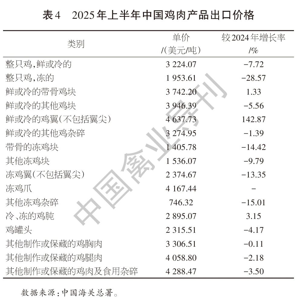 三、2025年上半年中国鸡肉产品进出口价格