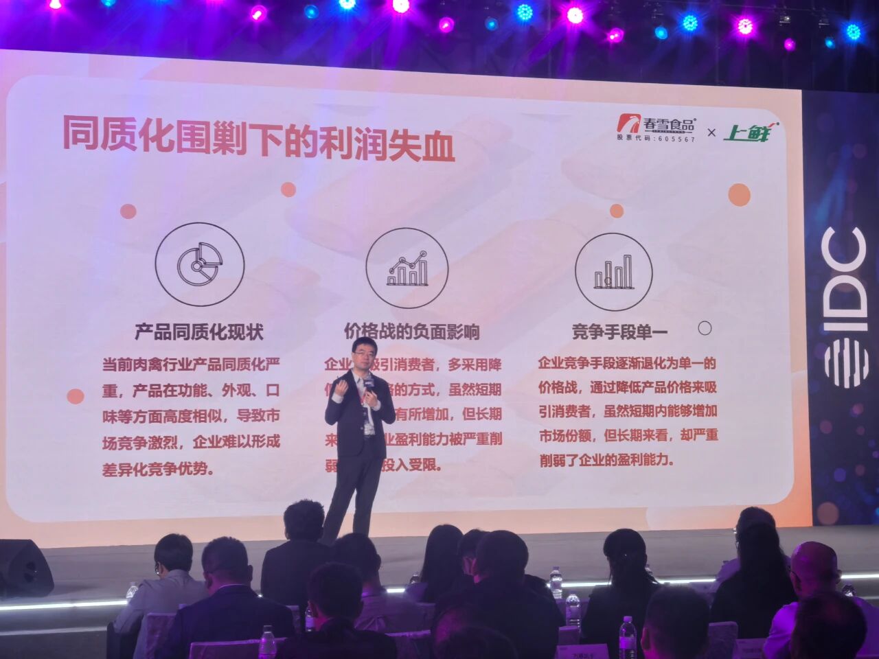 总裁郑钧在演讲中指出,当前肉禽行业正深陷同质化竞争与价格战的红海困境,传统增长模式面临严峻挑战。