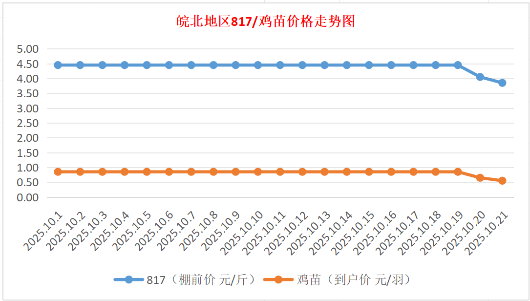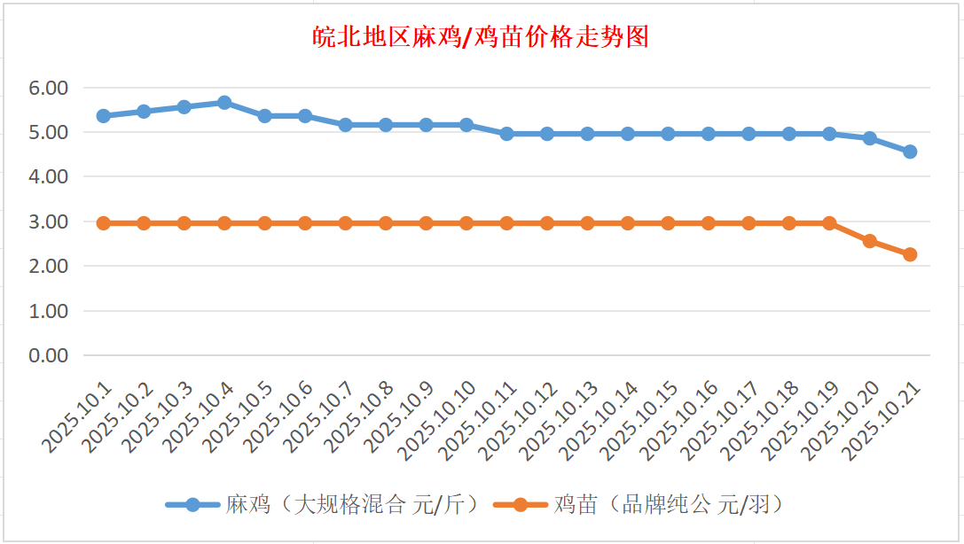 鸡病专业网独家信息:2025年10月21日皖北地区817-麻鸡行情最新走势