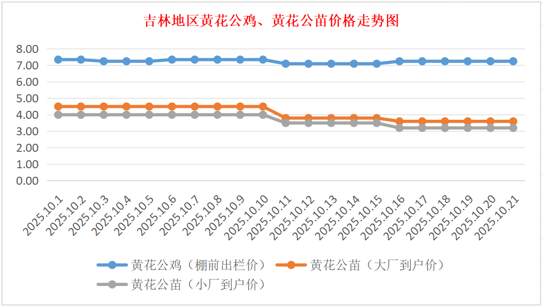 10月21日吉林黄花公鸡、鸡苗价格行情