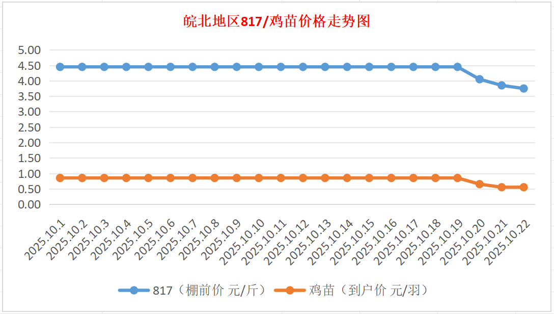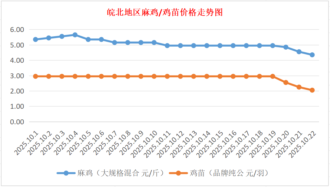 鸡病专业网独家信息:2025年10月22日皖北地区817-麻鸡行情最新走势