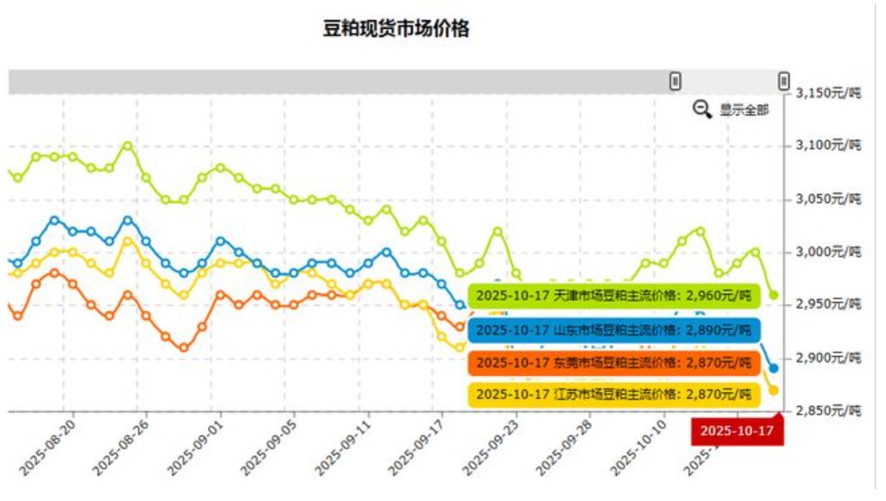 从最新数据分析,截至目前,国内主流沿海地区,油厂43%蛋白豆粕报价,其中,江苏油厂报价跌至2870元/吨,山东油厂报价跌至2890元/吨,广东油厂报价跌至2870元/吨,而天津地区油厂豆粕报价在2960元/吨。近期,国内油厂豆粕报价维持在2850-3000元/吨,市场呈现区间震荡的走势!