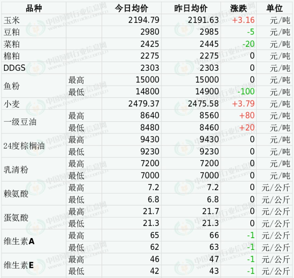 2025年10月21日国内饲料原料行情汇总
