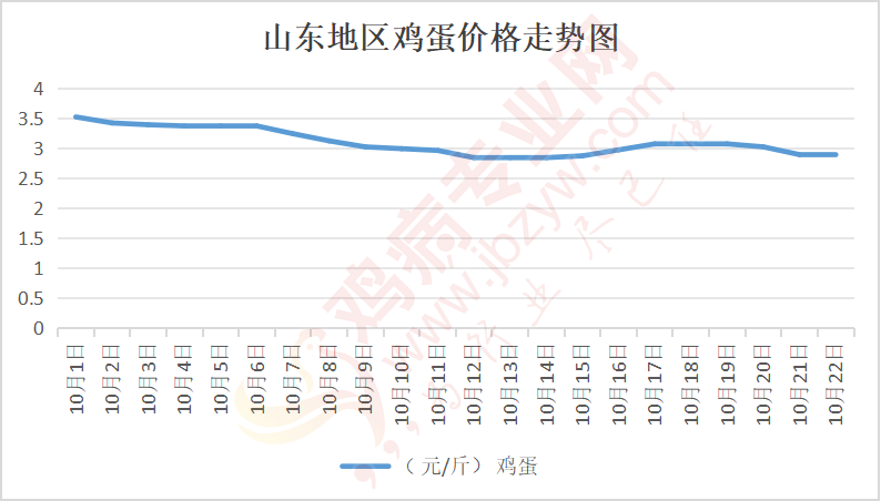 鸡病专业网消息:10月22日,山东地区莱阳鸡蛋3元/斤,稳;青岛鸡蛋3元/斤,稳;诸城鸡蛋2.9元/斤,稳;安丘鸡蛋2.8元/斤,稳;昌乐鸡蛋2.8元/斤,稳;寿光鸡蛋2.8元/斤,稳;昌邑鸡蛋2.8元/斤,稳;高密鸡蛋2.9元/斤,稳;青州鸡蛋2.8元/斤,稳;临朐鸡蛋2.8元/斤,稳;莱州鸡蛋3元/斤,稳;威海鸡蛋3元/斤,稳;临沭鸡蛋2.75元/斤,稳;沂水鸡蛋2.75元/斤,稳;沂南鸡蛋2.75元/斤,稳;莒南鸡蛋2.75元/斤,稳;兰陵县鸡蛋2.75元/斤,稳;日照鸡蛋2.75元/斤,稳;莒县鸡蛋2.75元/斤,稳;日照辛萁商贸鸡蛋2.75元/斤,稳;泗水鸡蛋价格81元/30斤,稳;济宁、汶上鸡蛋价格81元/30斤,稳;梁山、东平红蛋价格81元/30斤,稳;枣庄滕州地区鸡蛋混码主流到户84元/30斤,稳;泰安地区新泰鸡蛋价格81元/30斤,稳;菏泽地区曹县主流到户81元/30斤,稳;成武鸡蛋价格81元/30斤,稳;单县到户81元/30斤,稳;聊城莘县80元/30斤,稳。