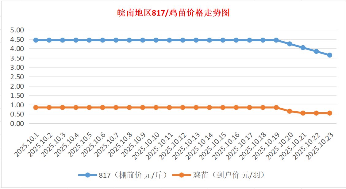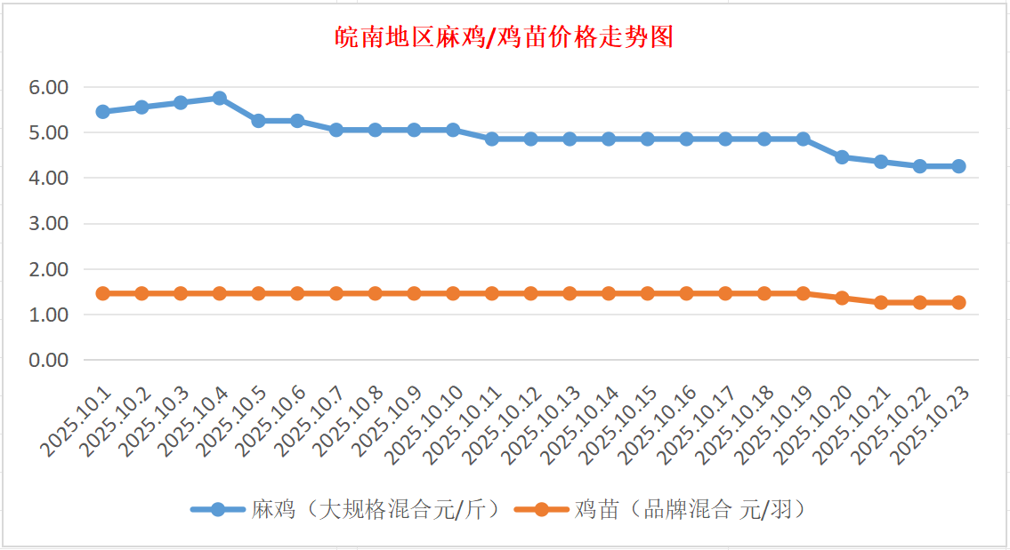 鸡病专业网独家信息:2025年10月23日皖南地区817-麻鸡行情最新走势