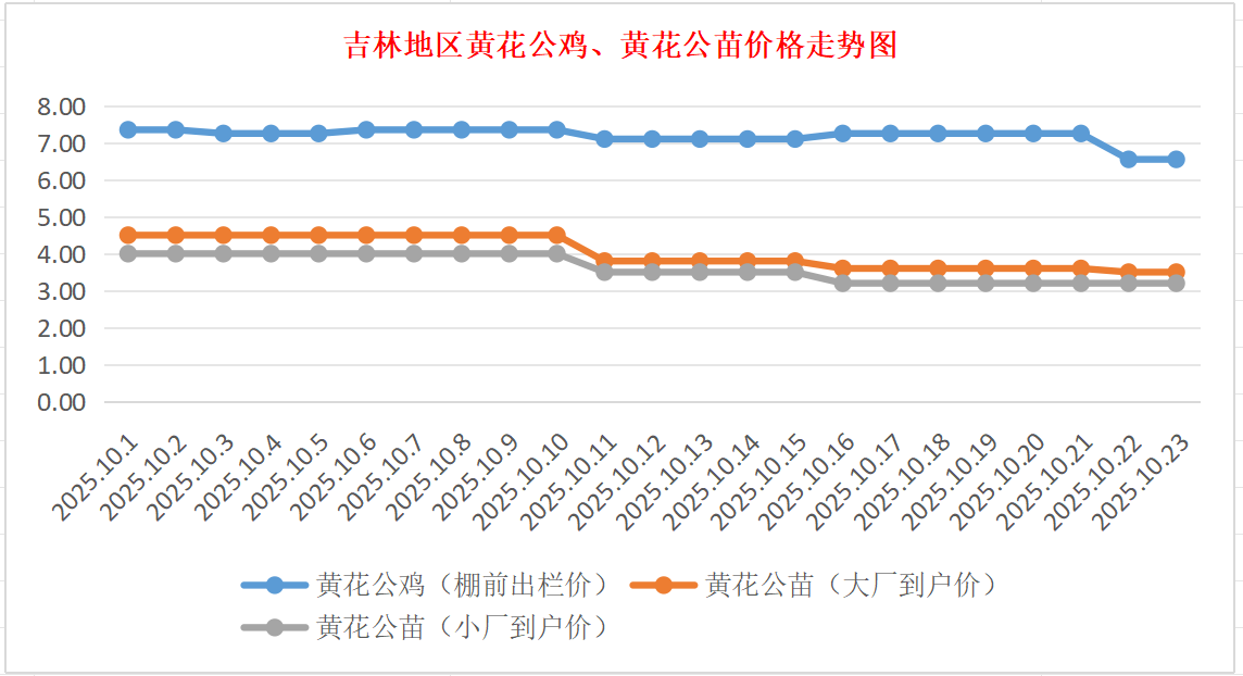 10月23日吉林黄花公鸡、鸡苗价格行情