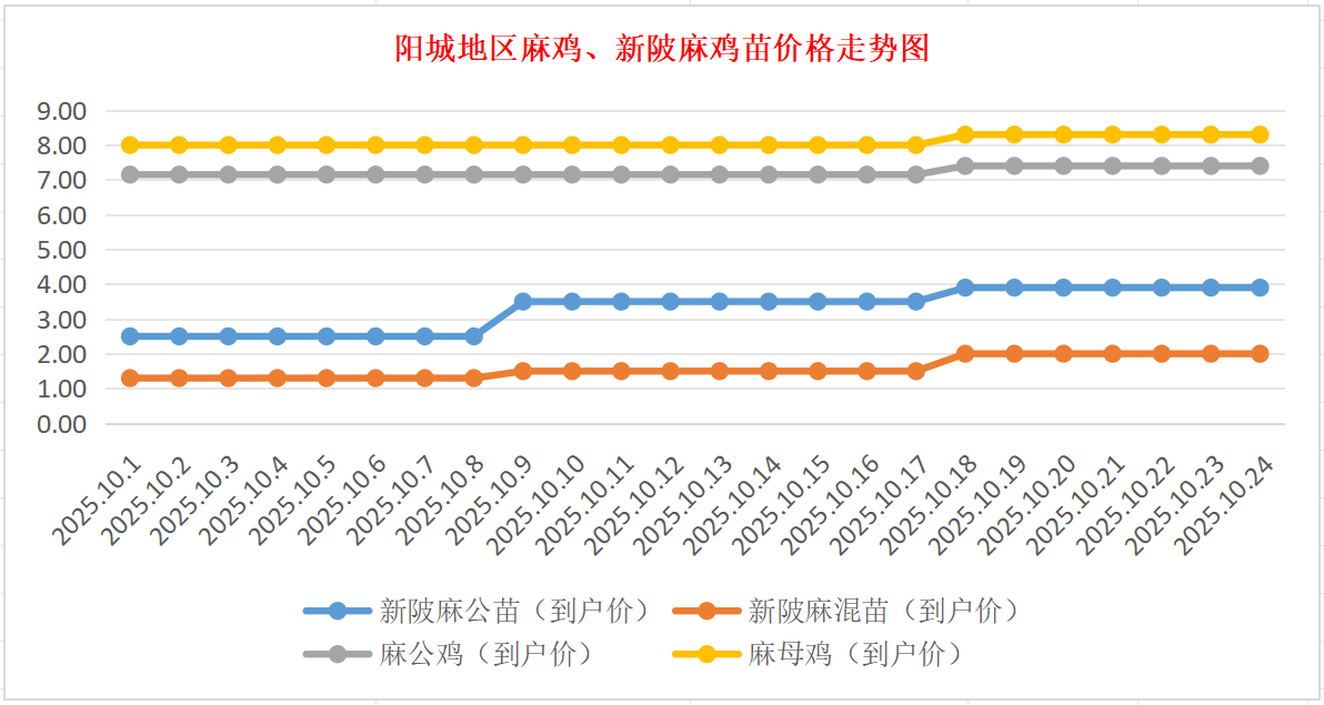 阳城地区麻鸡、新陂麻鸡苗价格走势图(来源:鸡病专业网)