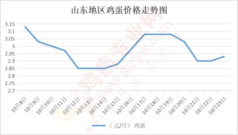 鸡病专业网消息:10月23日,山东地区莱阳鸡蛋3.05元/斤,涨;青岛鸡蛋3.05元/斤,涨;诸城鸡蛋2.9元/斤,稳;安丘鸡蛋2.8元/斤,稳;昌乐鸡蛋2.8元/斤,稳;寿光鸡蛋2.8元/斤,稳;昌邑鸡蛋2.8元/斤,稳;高密鸡蛋2.9元/斤,稳;青州鸡蛋2.8元/斤,稳;临朐鸡蛋2.8元/斤,稳;莱州鸡蛋3.05元/斤,涨;威海鸡蛋3.05元/斤,涨;临沭鸡蛋2.8元/斤,涨;沂水鸡蛋2.8元/斤,涨;沂南鸡蛋2.8元/斤,涨;莒南鸡蛋2.8元/斤,涨;兰陵县鸡蛋2.8元/斤,涨;日照鸡蛋2.8元/斤,涨;莒县鸡蛋2.8元/斤,涨;日照辛萁商贸鸡蛋2.8元/斤,涨;泗水鸡蛋价格81元/30斤,稳;济宁、汶上鸡蛋价格81元/30斤,稳;梁山、东平红蛋价格81元/30斤,稳;枣庄滕州地区鸡蛋混码主流到户84元/30斤,稳;泰安地区新泰鸡蛋价格81元/30斤,稳;菏泽地区曹县主流到户81元/30斤,稳;成武鸡蛋价格81元/30斤,稳;单县到户81元/30斤,稳;聊城莘县80元/30斤,稳。
