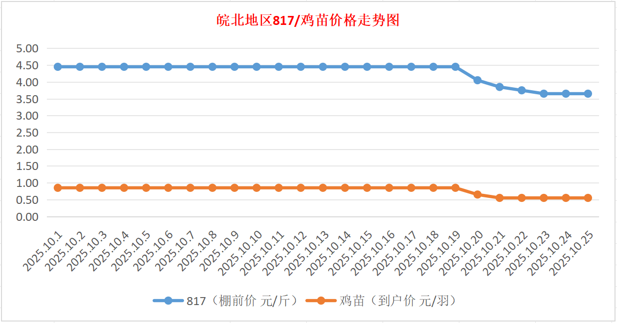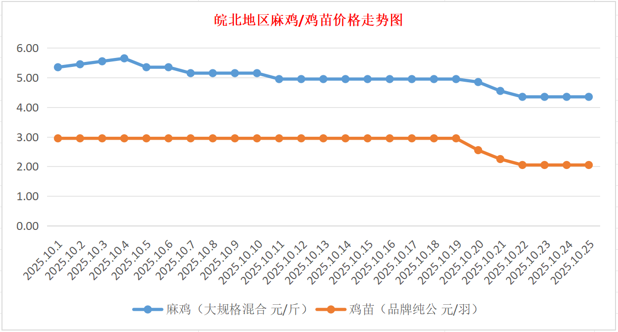 鸡病专业网独家信息:2025年10月25日皖北地区817-麻鸡行情最新走势