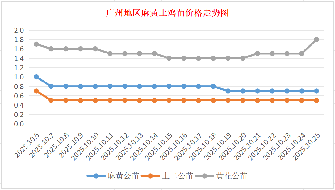 10月25日广州地区麻、黄、土鸡苗价格行情