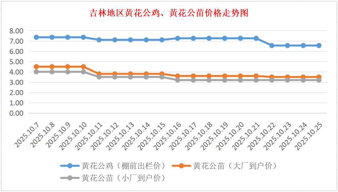 10月25日吉林黄花公鸡、鸡苗价格行情