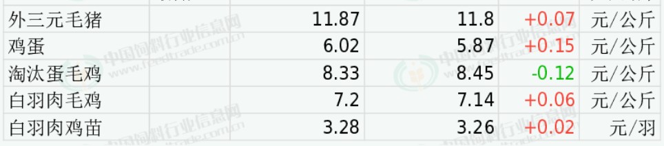 白羽肉毛鸡价格稳中有涨。因社会鸡源紧张,屠宰企业收购难度加大,不得不加价收购,推动毛鸡价格上涨,预计近期肉鸡价格窄幅震荡,有偏强情绪。今日主产区山东白羽肉毛鸡均价6.94元/公斤,较昨日价格上涨0.10;辽宁均价7.20元/公斤,较昨日价格上涨0.20;主销区江苏均价8.06元/公斤,较昨日价格上涨0.01。