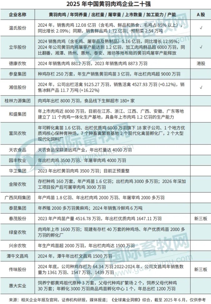 重磅!2025年中国黄羽肉鸡企业二十强出炉