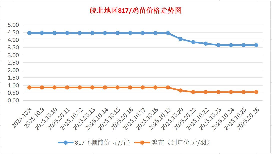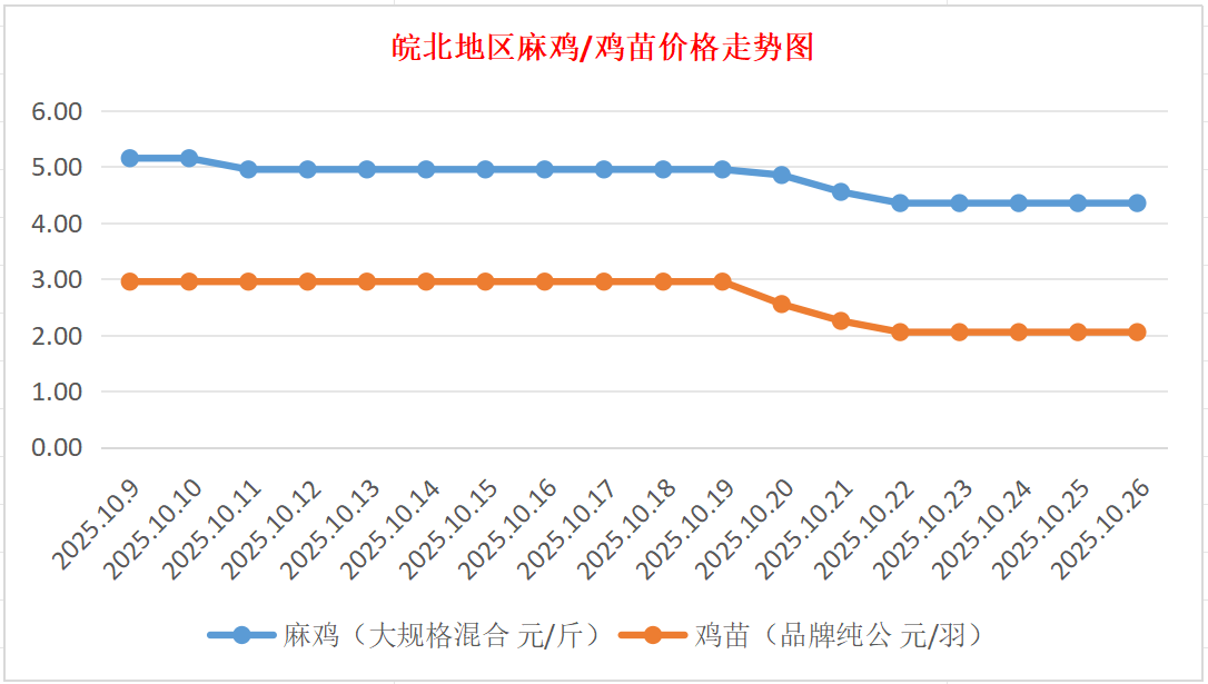 鸡病专业网独家信息:2025年10月26日皖北地区817-麻鸡行情最新走势