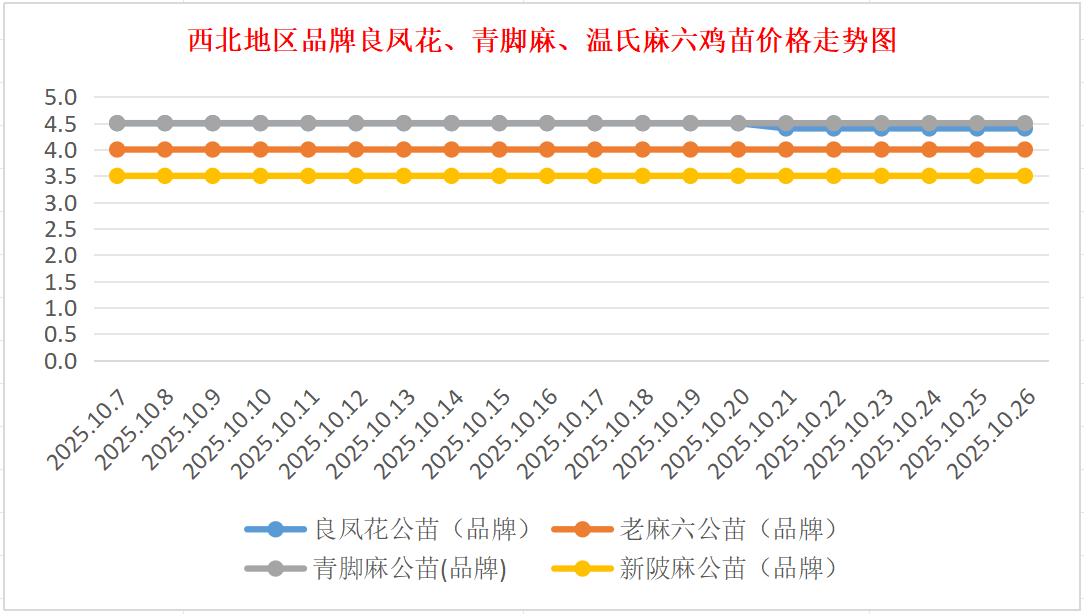品牌新陂麻:价格稳定,到户价公苗4.50元/羽,稳。