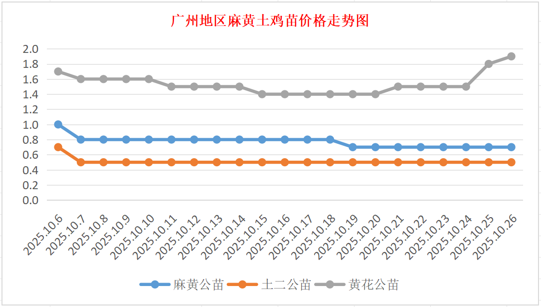 10月26日广州地区麻、黄、土鸡苗价格行情